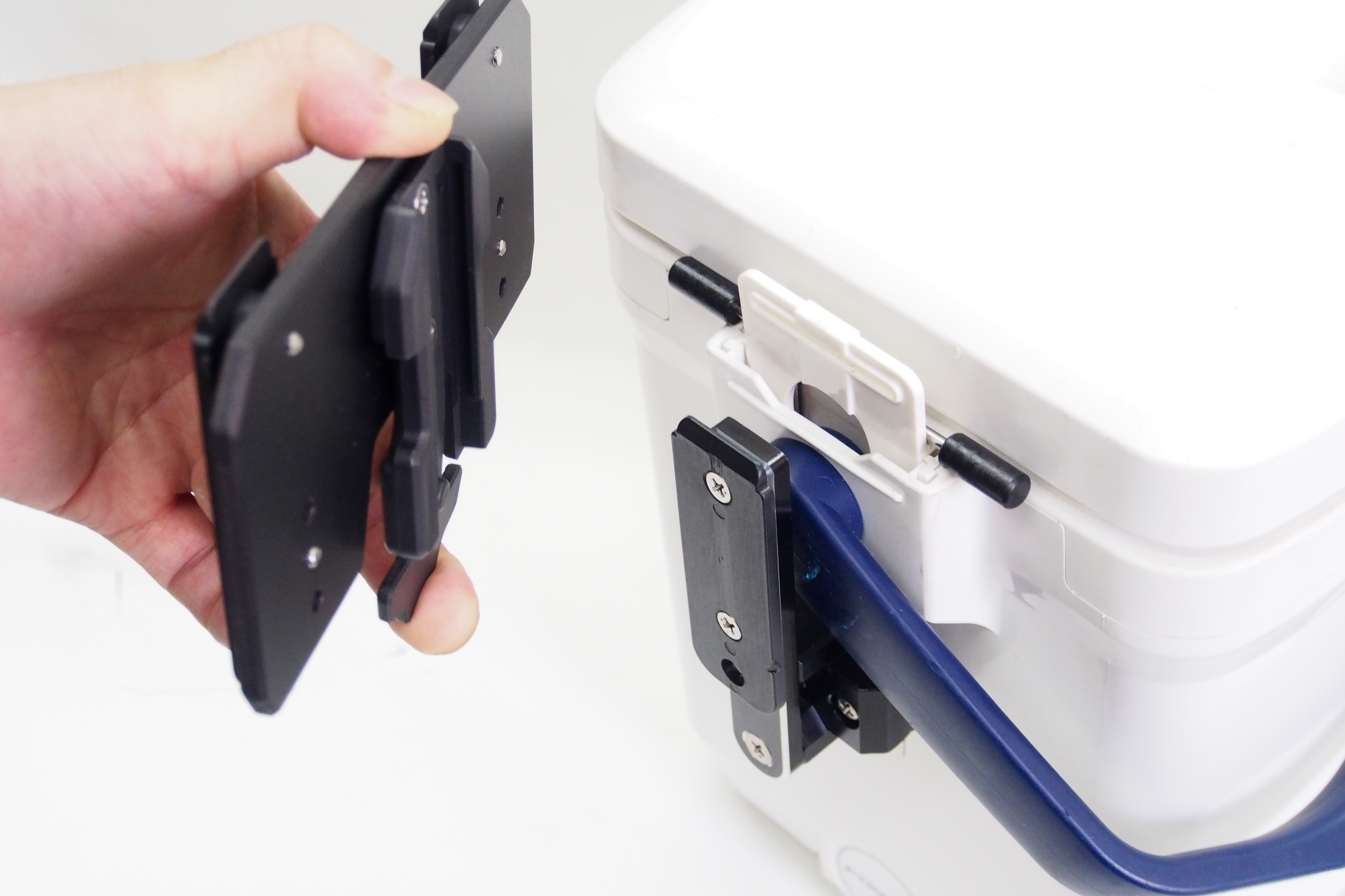取り付けはスライドジョイントシステム搭載、ワンタッチで着脱できます。ベースにはスライドスペーサー2個搭載しているので、片方にジョイントホルダーEX、もう片方にドリンクホルダーなどシーンに応じてカスタマイズできます。